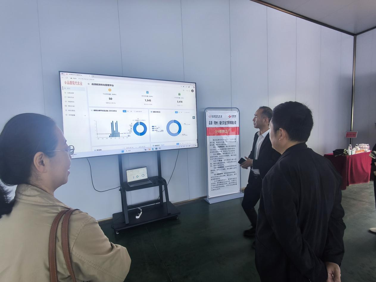 调研团队首先参观了品源5G智慧工厂的数字运维中心。在电子显示屏前,生产数据综合看板实时跳动着设备运行参数、能耗曲线、质量检测结果等关键信息。企业技术总监陶小迪介绍,该工厂以联通企业级5G专网为核心底座,通过构建虚拟专网实现生产数据与公网业务的物理隔离,网络时延控制在毫秒级,为全流程智能化提供了高速、稳定、安全的通信保障。