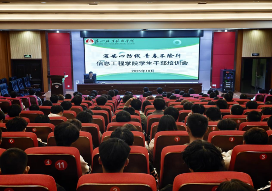 为进一步加强学生寝室安全管理,提升寝室长的责任意识与工作能力,充分发挥寝室长在寝室文化建设、安全保障及同学沟通中的重要作用。2025年10月16日晚信息工程学院学生工作办公室在学校学术报告厅成功举办“寝安心防线、青春不险行”寝室长工作职责专题培训。各班班长及寝室长共计272人参加了此次培训,学生工作办公室李国赢担任主讲人。