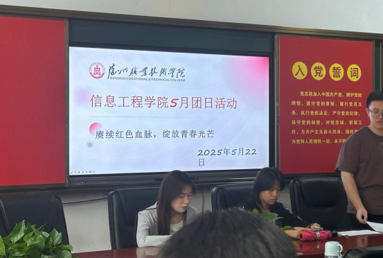 为激励广大青年学生坚定理想信念、锤炼本领才干、展现青春风采,凝聚青年力量,助力其成长为有理想、敢担当、能吃苦、肯奋斗的新时代先锋。信息工程学院于2025年5月22日在少农楼2215开展“赓续红色血脉,绽放青春光芒”主题团日活动,旨在传承红色精神,坚定青年信念,激发奋斗担当,培育新时代接班人。此次活动由信息工程学院各班团支部书记和学生会宣传部全体成员参与。