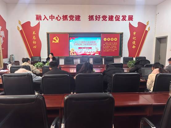 在“十四五”规划圆满收官、“十五五”规划谋篇布局的关键历史节点,为深入学习贯彻党的二十届四中全会精神,切实将会议部署转化为推动学院高质量发展的生动实践,2025年12月5日,信息工程学院党总支书记程蓉围绕“以二十届四中全会精神引领信息工程学院新征程”主题讲了一堂党课,信息工程学院全体党员教师参加。