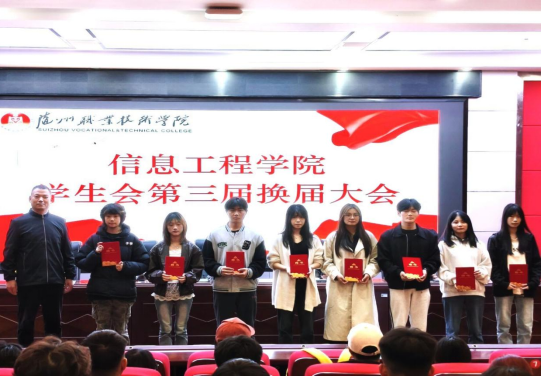 信息工程学院第三届学生会换届大会于2025年10月28日在云桂楼学术报告厅隆重召开。出席本次大会的人员有信息工程学院党总支副书记吴付勇、信息工程学院学工办主任李国赢,信息工程学院学工办副主任张文祺,信息工程学院团总支书记黎旭辉,信息工程学院专职辅导员陈建峰,全体学生会成员、学生代表。